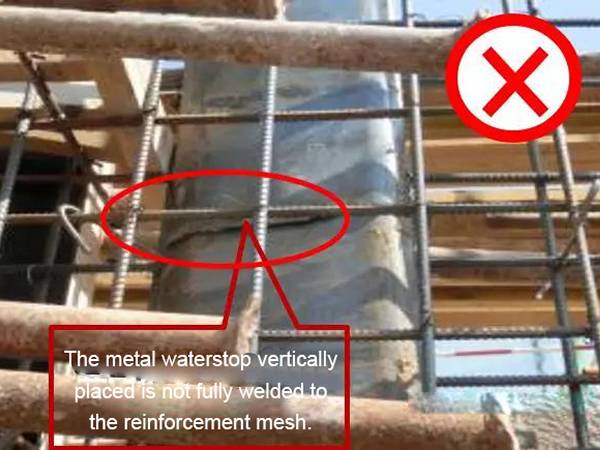 - Improper treatment of the metal waterstop welding seams at the overlapping part can easily cause hidden leakage.